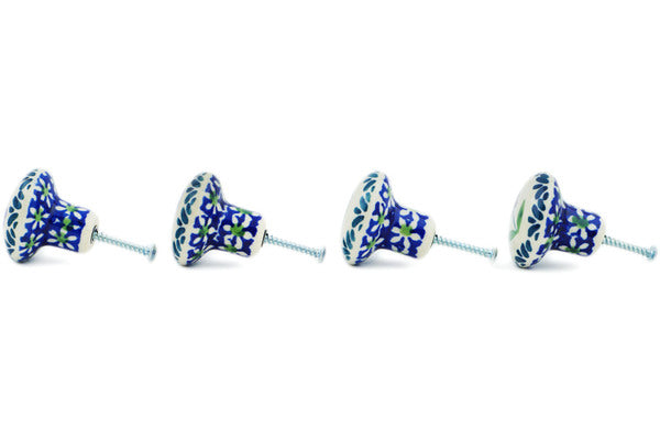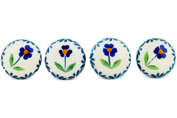 This Mariposa Lily Set of 4 Drawer Pull Knobs 1-1/2 inch was handmade and hand decorated in Boleslawiec, Poland by skilled artisans according to old traditional methods. This Polish stoneware is microwave, dishwasher, freezer, and oven safe up to 480°F. It does not contain lead or cadmium. It is part of the Mariposa Lily Collection.