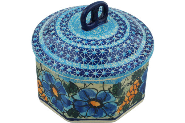 Jar with Lid 7" Corn In The Blue Theme UNIKAT