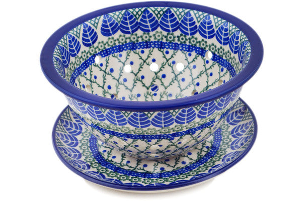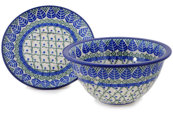 Colander with Plate 8" Blue Alpine Theme