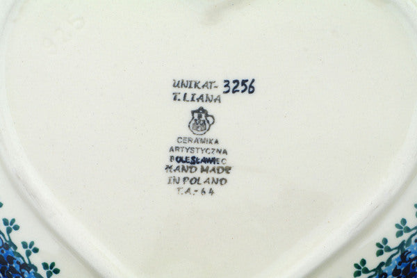 Heart Shaped Platter 9" Hummingbird Blue Theme UNIKAT
