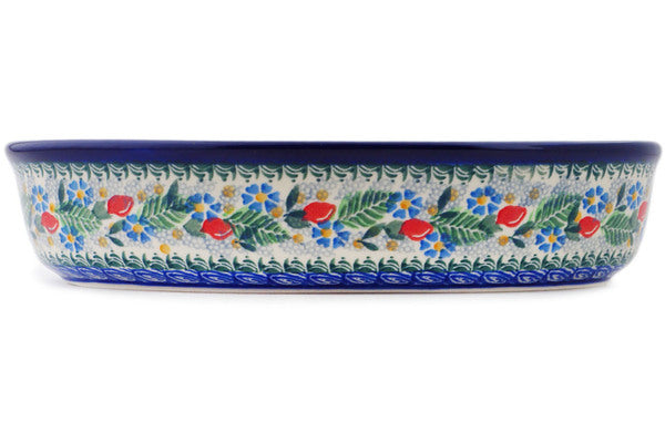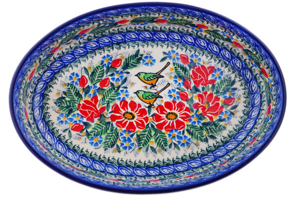 Oval Baker 11" Green Bird Meadow Theme UNIKAT