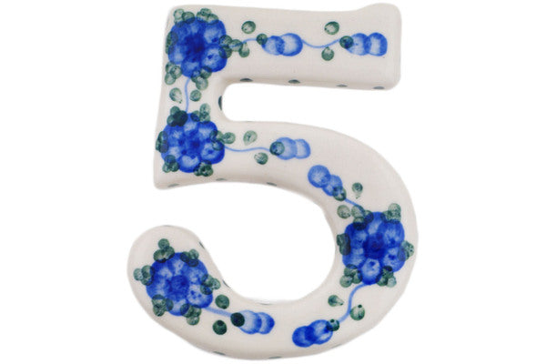 House Number 5 (Five) 4-inch Blue Poppies Theme