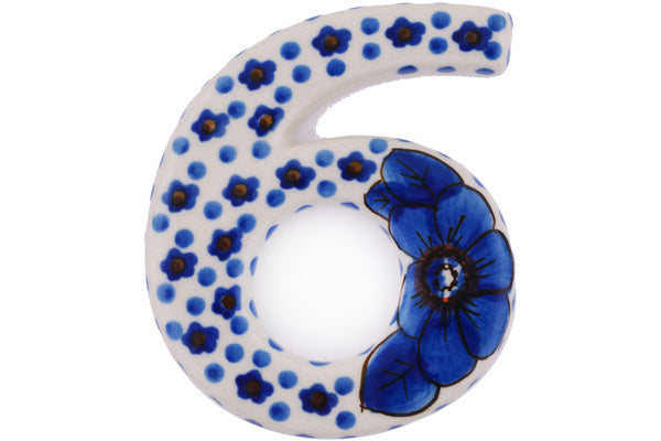 House Number SIX (6) 4-inch Cobalt Poppies Theme UNIKAT