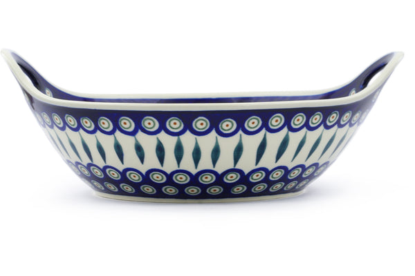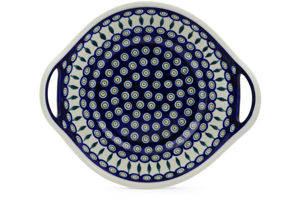 Bowl with Handles 12-inch Peacock Leaves Theme