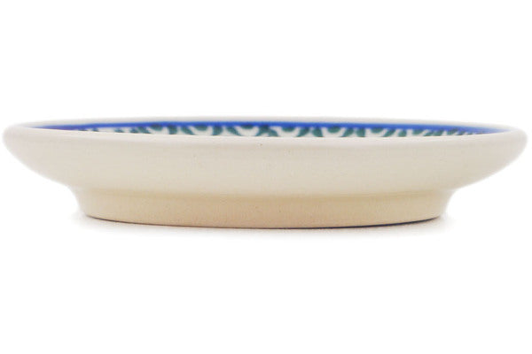 Mini Plate, Coaster plate 4" Blue Fan Flowers Theme