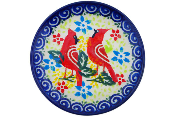 Plate 4" Lovely Red Birds Theme UNIKAT