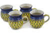 Set of Four 12 oz Bubble Mugs Cobalt Poppies Theme UNIKAT