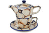 Tea Set for One 13 oz Green Chrysanthemums Theme UNIKAT