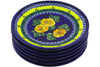 Set of 4 dessert plates Bold Blue Poppies Theme UNIKAT