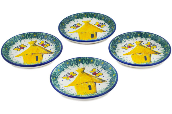 Set of 4 Coasters Bee Happy Theme UNIKAT