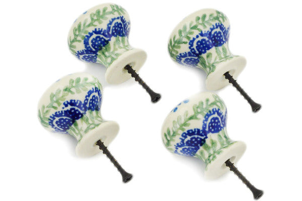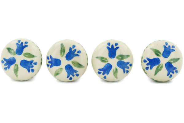Set of 4 Drawer Pull Knobs Blue Tulip Theme