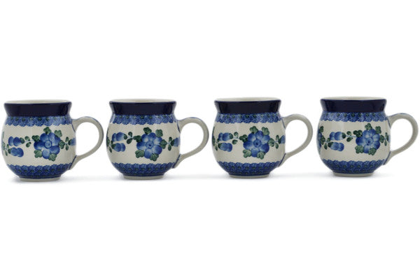 Set of Four 12 oz Bubble Mugs Blue Poppies Theme