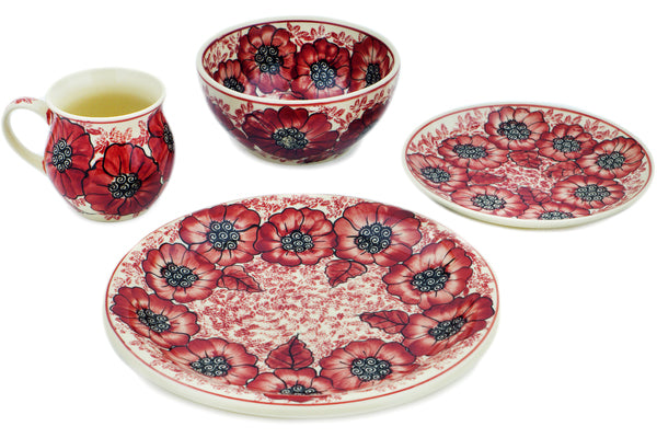 4-Piece Place Setting Sugar Plum Poppies Theme UNIKAT