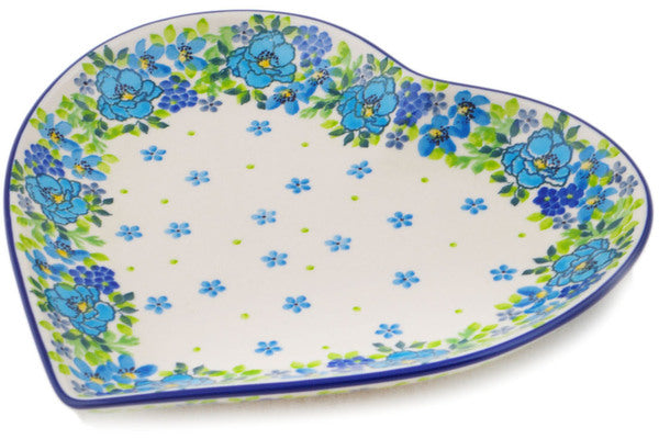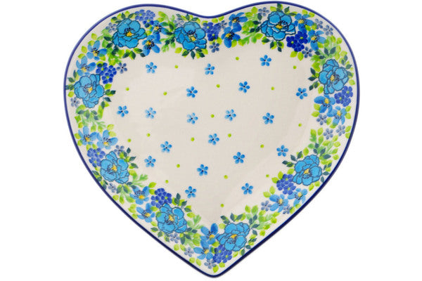 Heart Shaped Platter 9" Blue Kissed Petals Theme UNIKAT