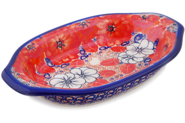 Platter with Handles 13" Poppy Passion Theme UNIKAT