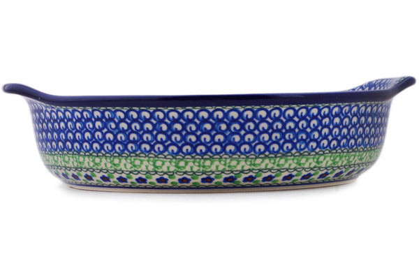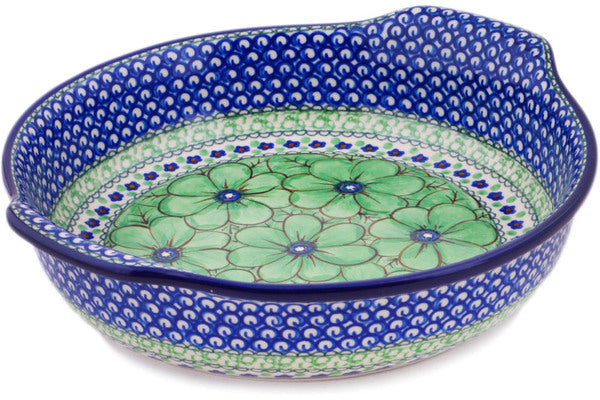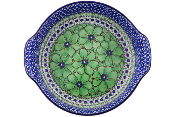 Round Baker with Handles 10-inch Green Pansies Theme UNIKAT