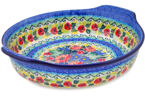Round Baker with Handles 10-inch Splendid Meadow Theme UNIKAT