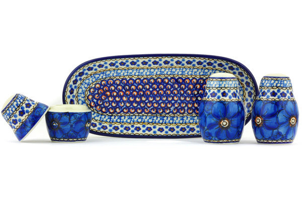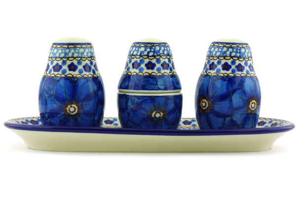 Salt and Pepper with Toothpick Holder 10" Cobalt Poppies Theme UNIKAT