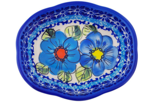 Soap Dish 5" Bold Blue Poppies Theme UNIKAT