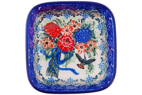 Square Bowl 4" Hummingbird Bouquet Theme UNIKAT