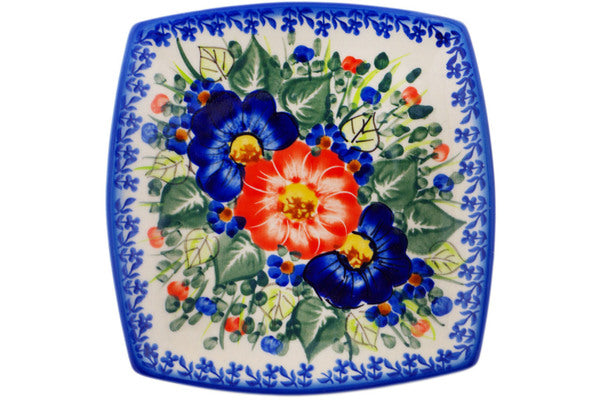 Square Plate 7" Poppy Trio Theme UNIKAT