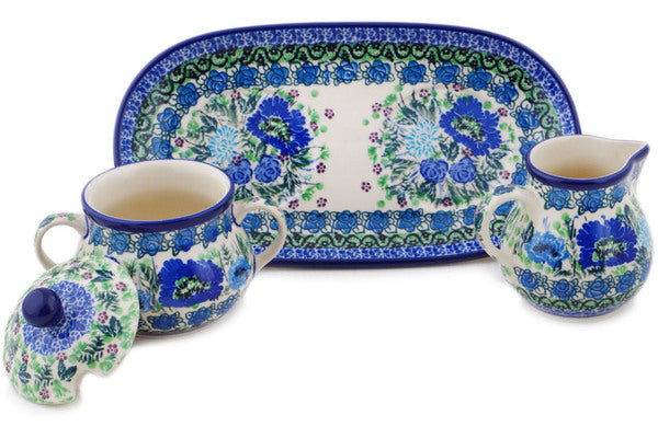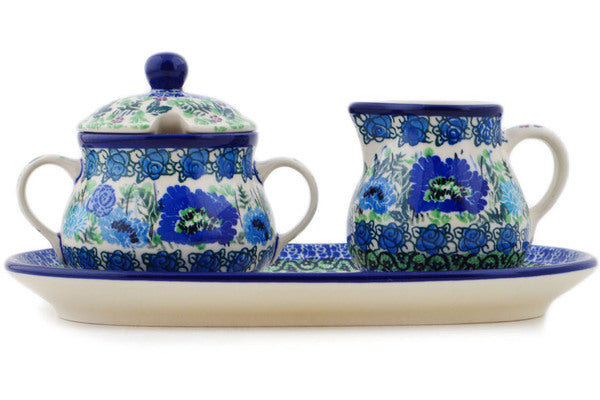 Sugar and Creamer Set 10" Blue Meadow Theme UNIKAT