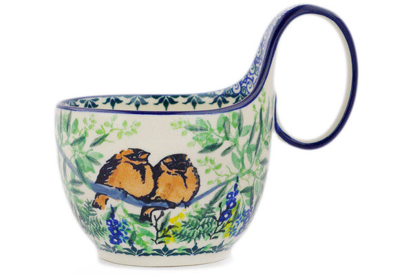 Bowl with Loop-Handle 16 oz Feathered Friends Theme UNIKAT
