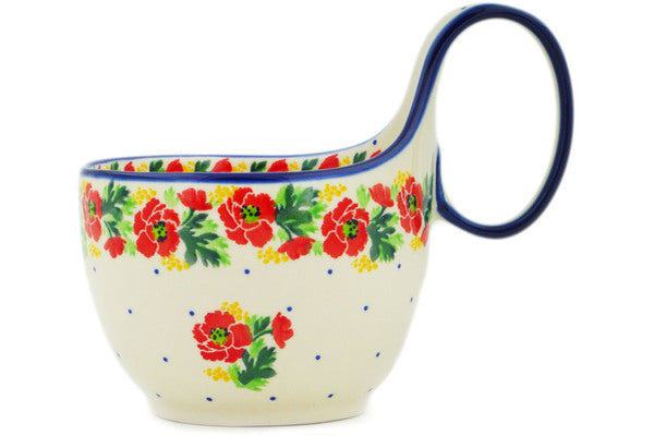 Bowl with Loop-Handle 16 oz Red Poppy Chain Theme