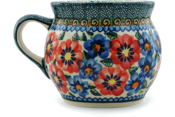 Bubble Mug 16 oz Blue And Red Poppies Theme UNIKAT