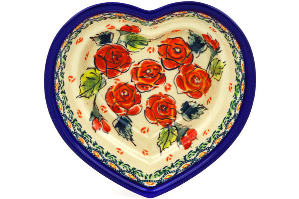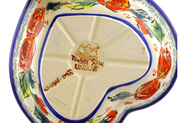 Heart Shaped Bowl 6" Polish Roses Theme UNIKAT