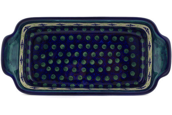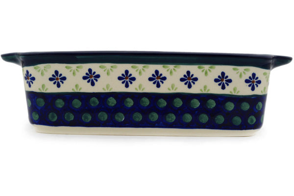 Rectangular Baker with Handles 10" Green Gingham Peacock Theme
