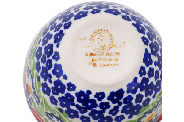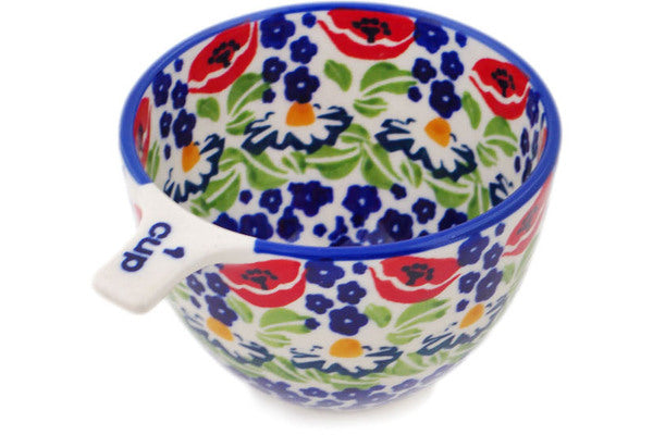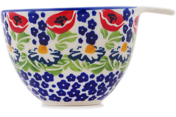 This Wild Poppies 8 oz 1 Cup Measuring Cup was handmade and hand decorated in Boleslawiec, Poland by skilled artisans according to old traditional methods. This is a Polish pottery Signature Unikat, which means that it has been hand painted with both sponges and brushes and it is signed by the artist who painted it. Unikat pieces are the most intricate works of art. Larger Unikat items take hours of very careful work to finish. This Polish stoneware is microwave, dishwasher, freezer, and oven safe up to 480°F. It does not contain lead or cadmium. It is part of the Wild Poppies Collection.