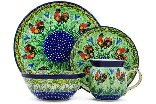 4-Piece Place Setting Rooster Parade Theme UNIKAT