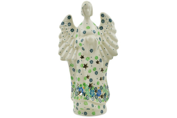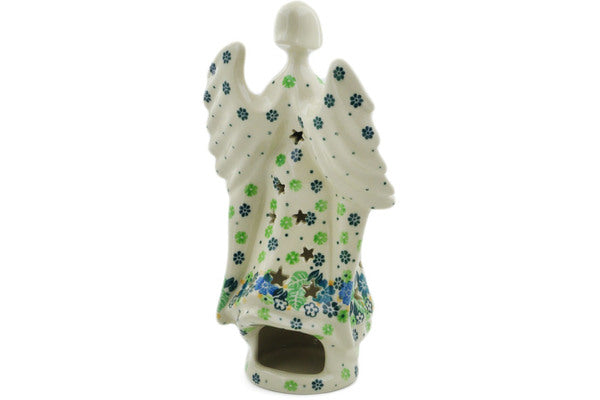 This Tropical Leaf 9" Angel Candle Holder was handmade and hand decorated in Boleslawiec, Poland by skilled artisans according to old traditional methods. This Polish stoneware is microwave, dishwasher, freezer, and oven safe up to 480°F. It does not contain lead or cadmium. It is part of the Tropical Leaf Collection.