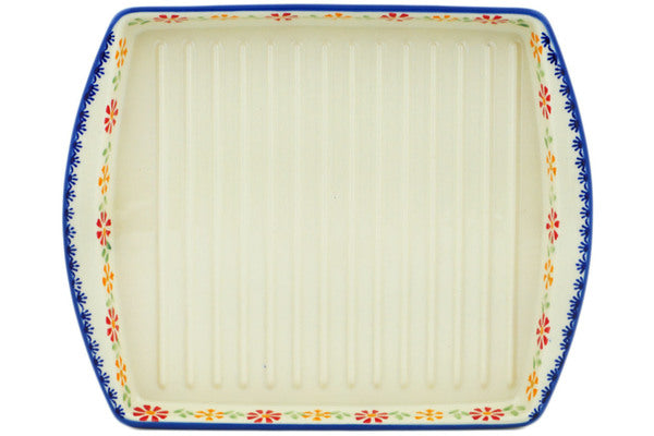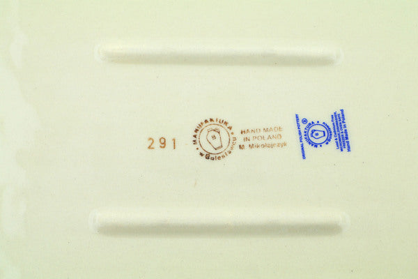 This Wave Of Flowers 10" Bacon Platter was handmade and hand decorated in Boleslawiec, Poland by skilled artisans according to old traditional methods. This Polish stoneware is microwave, dishwasher, freezer, and oven safe up to 480°F. It does not contain lead or cadmium. It is part of the Wave Of Flowers Collection.
