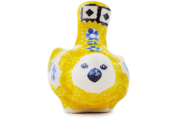 This Sunburst Daisies 2" Bird Figurine was handmade and hand decorated in Boleslawiec, Poland by skilled artisans according to old traditional methods. This Polish stoneware is microwave, dishwasher, freezer, and oven safe up to 480°F. It does not contain lead or cadmium. It is part of the Sunburst Daisies Collection.
