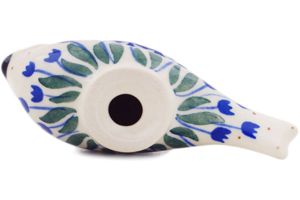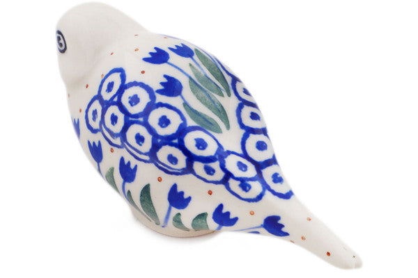 This Water Tulip 4" Bird Figurine was handmade and hand decorated in Boleslawiec, Poland by skilled artisans according to old traditional methods. This Polish stoneware is microwave, dishwasher, freezer, and oven safe up to 480°F. It does not contain lead or cadmium. It is part of the Water Tulip Collection.