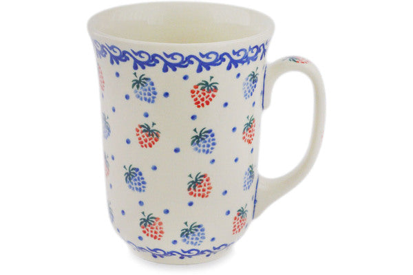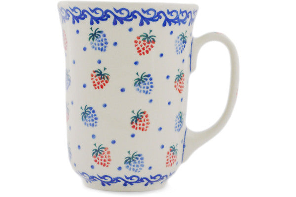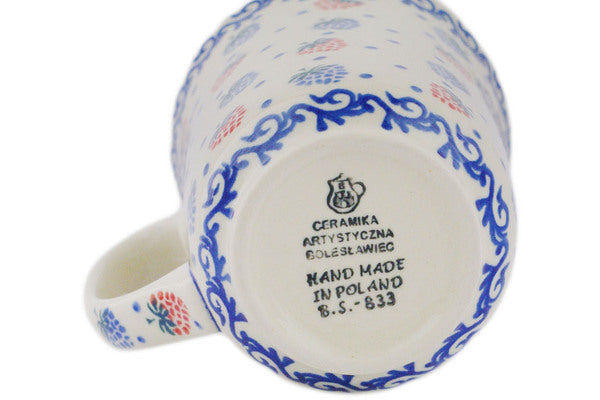 This Berries And Dots 17 oz Bistro Mug was handmade and hand decorated in Boleslawiec, Poland by skilled artisans according to old traditional methods. This Polish stoneware is microwave, dishwasher, freezer, and oven safe up to 480°F. It does not contain lead or cadmium. It is part of the Berries And Dots Collection.