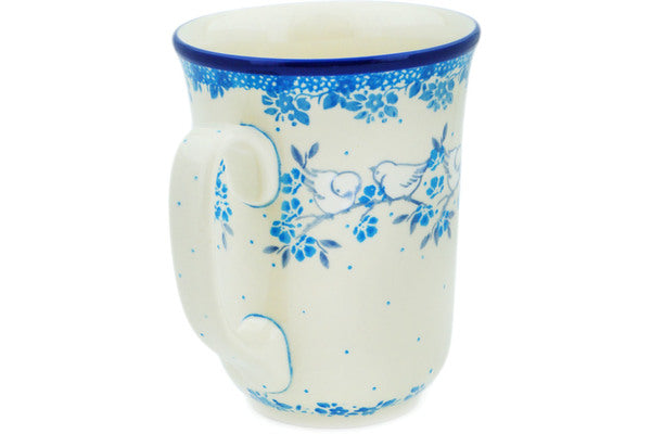 This Happy Doves 17 oz Bistro Mug was handmade and hand decorated in Boleslawiec, Poland by skilled artisans according to old traditional methods. This Polish stoneware is microwave, dishwasher, freezer, and oven safe up to 480°F. It does not contain lead or cadmium. It is part of the Happy Doves Collection.