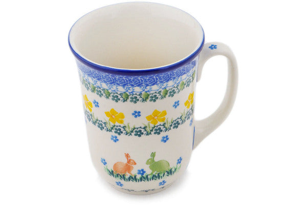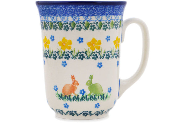 This Happy Hares 17 oz Bistro Mug was handmade and hand decorated in Boleslawiec, Poland by skilled artisans according to old traditional methods. This Polish stoneware is microwave, dishwasher, freezer, and oven safe up to 480°F. It does not contain lead or cadmium. It is part of the Happy Hares Collection.