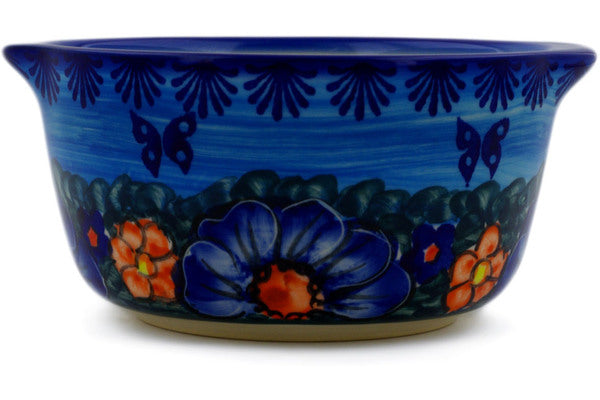 This Midnight Garden 15 oz Bouillon Cup was handmade and hand decorated in Boleslawiec, Poland by skilled artisans according to old traditional methods. This is a Polish pottery Signature Unikat, which means that it has been hand painted with both sponges and brushes and it is signed by the artist who painted it. Unikat pieces are the most intricate works of art. Larger Unikat items take hours of very careful work to finish. This Polish stoneware is microwave, dishwasher, freezer, and oven safe up to 480°F. It does not contain lead or cadmium. It is part of the Midnight Garden Collection.