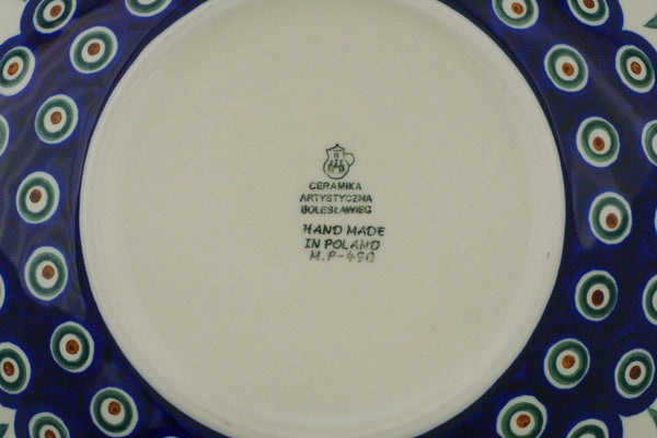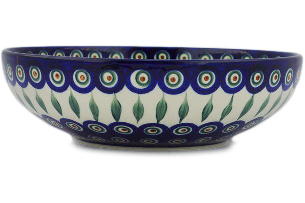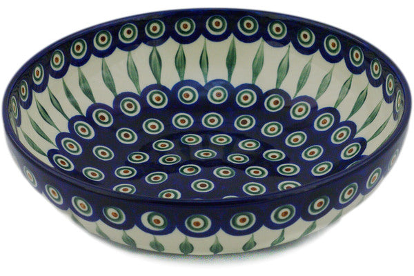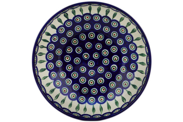 This Peacock Leaves 11" Bowl was handmade and hand decorated in Boleslawiec, Poland by skilled artisans according to old traditional methods. This Polish stoneware is microwave, dishwasher, freezer, and oven safe up to 480°F. It does not contain lead or cadmium. It is part of the Peacock Leaves Collection.