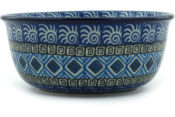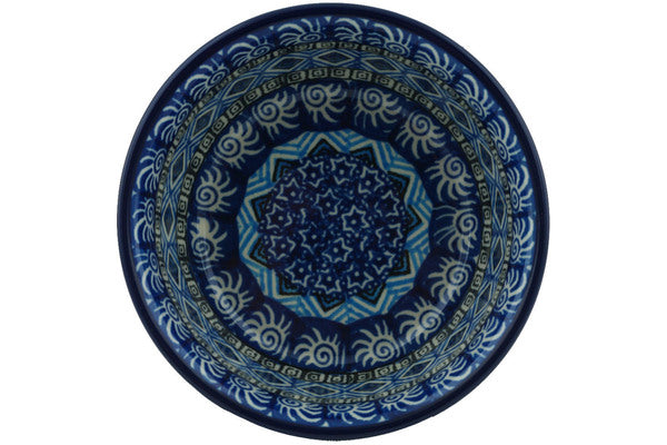 This Aztec Sky 5" Bowl was handmade and hand decorated in Boleslawiec, Poland by skilled artisans according to old traditional methods. This Polish stoneware is microwave, dishwasher, freezer, and oven safe up to 480°F. It does not contain lead or cadmium. It is part of the Aztec Sky Collection.