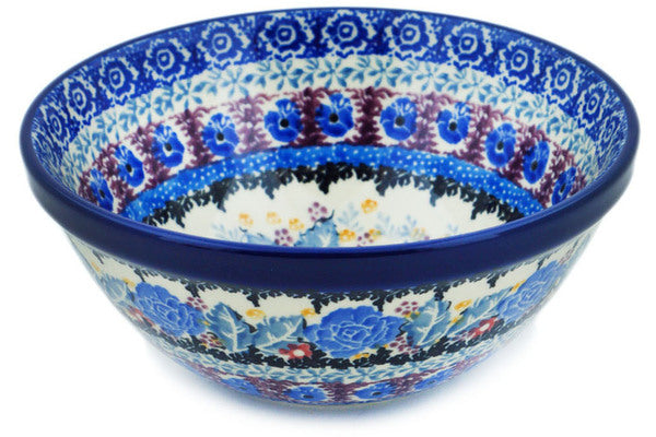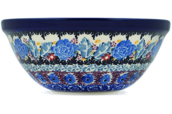 This Beautiful Blues 5" Bowl was handmade and hand decorated in Boleslawiec, Poland by skilled artisans according to old traditional methods. This is a Polish pottery Signature Unikat, which means that it has been hand painted with both sponges and brushes and it is signed by the artist who painted it. Unikat pieces are the most intricate works of art. Larger Unikat items take hours of very careful work to finish. This Polish stoneware is microwave, dishwasher, freezer, and oven safe up to 480°F. It does not contain lead or cadmium. It is part of the Beautiful Blues Collection.
