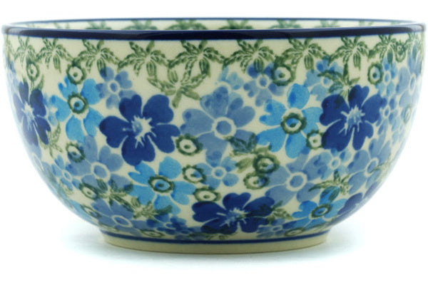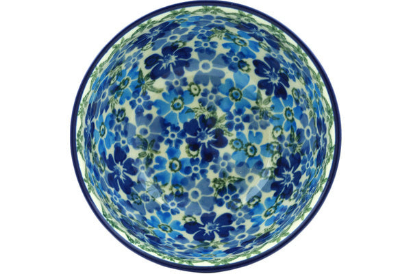This Fields Of Blue 5" Bowl was handmade and hand decorated in Boleslawiec, Poland by skilled artisans according to old traditional methods. This is a Polish pottery Signature Unikat, which means that it has been hand painted with both sponges and brushes and it is signed by the artist who painted it. Unikat pieces are the most intricate works of art. Larger Unikat items take hours of very careful work to finish. This Polish stoneware is microwave, dishwasher, freezer, and oven safe up to 480°F. It does not contain lead or cadmium. It is part of the Fields Of Blue Collection.