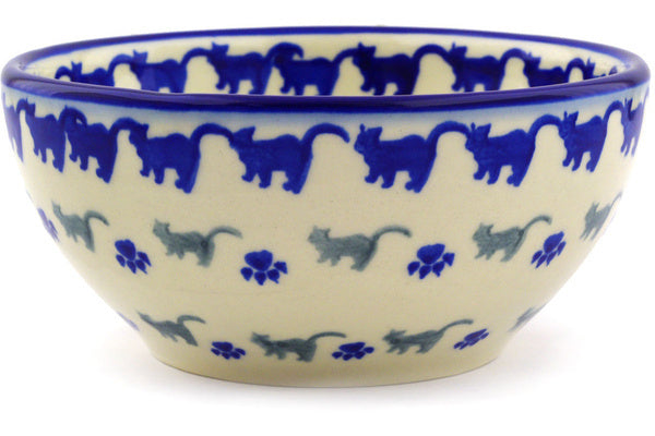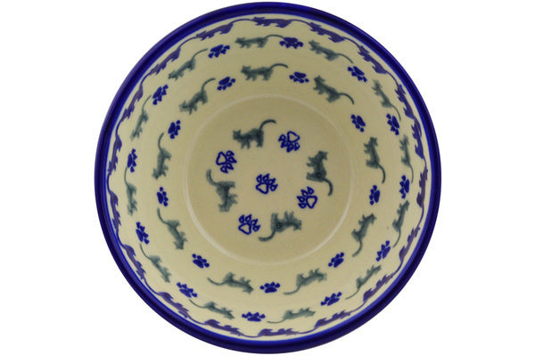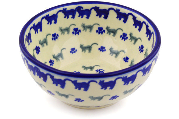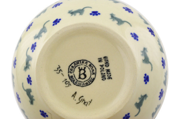 This Boo Boo Kitty Paws 6" Bowl was handmade and hand decorated in Boleslawiec, Poland by skilled artisans according to old traditional methods. This Polish stoneware is microwave, dishwasher, freezer, and oven safe up to 480°F. It does not contain lead or cadmium. It is part of the Boo Boo Kitty Paws Collection.