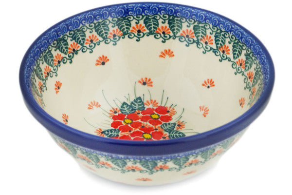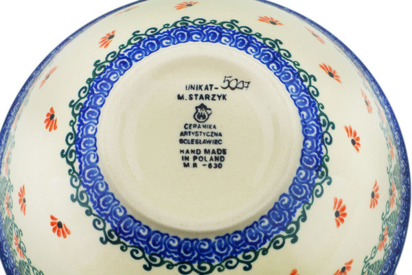 This Pink Forget Me Not 6" Bowl was handmade and hand decorated in Boleslawiec, Poland by skilled artisans according to old traditional methods. This is a Polish pottery Signature Unikat, which means that it has been hand painted with both sponges and brushes and it is signed by the artist who painted it. Unikat pieces are the most intricate works of art. Larger Unikat items take hours of very careful work to finish. This Polish stoneware is microwave, dishwasher, freezer, and oven safe up to 480°F. It does not contain lead or cadmium. It is part of the Pink Forget Me Not Collection.