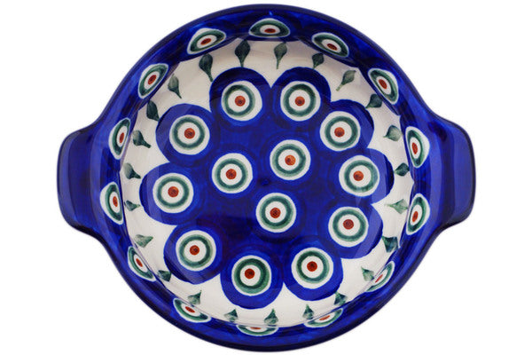 Bowl with Handles 6" Peacock Leaves Theme