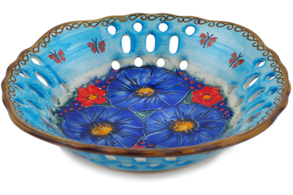Bowl with Holes 9" Blue Garden Theme UNIKAT