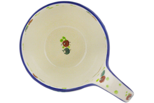This Acorns Are Falling 16 oz Bowl with Loop-Handle was handmade and hand decorated in Boleslawiec, Poland by skilled artisans according to old traditional methods. This Polish stoneware is microwave, dishwasher, freezer, and oven safe up to 480°F. It does not contain lead or cadmium. It is part of the Acorns Are Falling Collection.